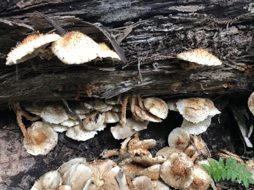 | この木の周りにたくさんの小さなキノコが群生。 拡大は右の写真=> |
