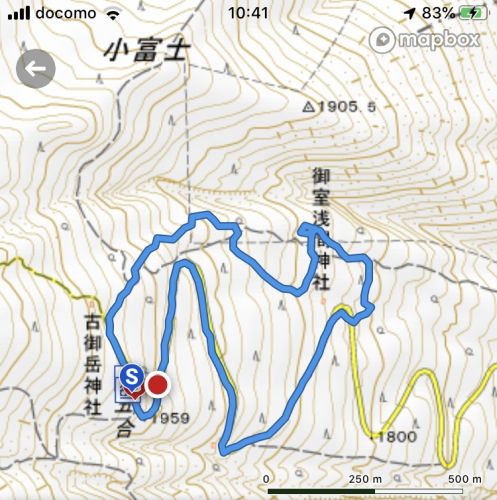 た道を上がって来ました。 崖と道に囲まれた場所なので仲間とはぐれたら、道側に進むか上に上がれと伝えたので比較的遭難しにくい場所でした。 でも一人はぐれて大声で呼んでも見つからず電話で連絡取れました。 この辺は携帯の電波バリバリなので安心。 |